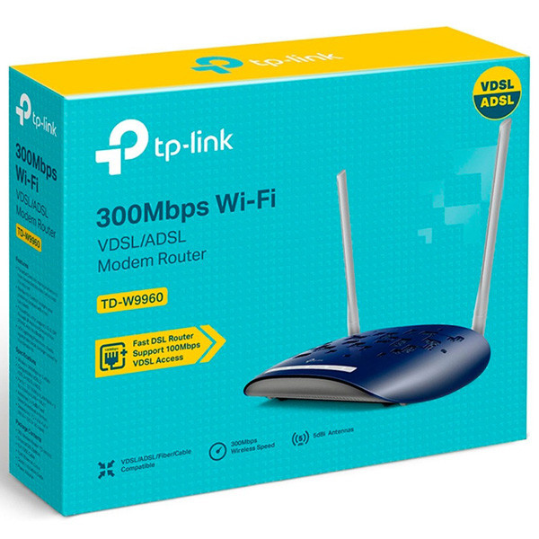 مودم روتر « TD-W9960 V1.20 » محصول شرکت نام آشنای «تیپی-لینک» (TP-Link)، اینترنت VDSL/ADSL را بهصورت بیسیم به اشتراک میگذارد و با بهرهوری بیشتر، قدرت و امنیت بالاتری ارائه میکند. این روتر فوقالعاده سریع و پرقدرت دارای 2 عدد آنتن خارجی قوی است. آنتنهای خارجی TD-W9960 V1.20 بسیار باکیفیت هستند و عملکرد بیسیم عالی با سیگنال پایدار در تمامی جهات و سرعت بالا در فواصل بیشتر را به ارمغان میآورد. فناوری VDSL2 سرعت پهن باند VDSL حداکثر 100 مگابیت در ثانیه ای را به طور همزمان برای آپلود و دانلود ارائه می دهد. پورت DSL تعبیه شده در دستگاه از تمام اتصالات استاندارد DSL پشتیبانی می کند و با اکثر ISP ها سازگاری دارد. مودم تی پی لینک TD-W9960 V1 با VDSL2, ADSL2+, ADSL2 و ADSL سازگاری دارد.این مودم تی پی لینک با سرعت وایرلس 300 مگابیت در ثانیه ای و با فرکانس باند 2.4 گیگاهرتزی و پورت های LAN چهار مگابیتی همراه است.. این محصول از شرکت تی پی-لینک بهراحتی و تنها در چند دقیقه تنظیم میشود؛ این کار با استفاده از اینترفیس وب بیس و اپلیکیشن موبایلی پرقدرت Tether امکانپذیر است؛ همچنین با نصب اپلیکیشن Tether روی دیوایسهای iOS و اندرویدی میتوان به تنظیماتی مانند میزان دسترسی و کنترل والدین دسترسی پیدا کرد. مودم روتر TD-W9960 V1 تیپی-لینک نگرانی شما را از بابت مشکلاتی که شاید از اتصال چند دستگاه به طور همزمان در یک شبکه چندرسانهای خانگی به وجود آید، از بین میبرد و بهراحتی در هر نقطه از خانه یا دفترکار بزرگ خود میتوانید به این دستگاه متصل شوید.